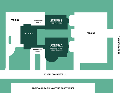 Our church is located on the corner on of Yellow Jacket Lane and Townsend Dr, situated across from the Rockwall County Court House and Library, and Wilkerson-Sanders Memorial Stadium.